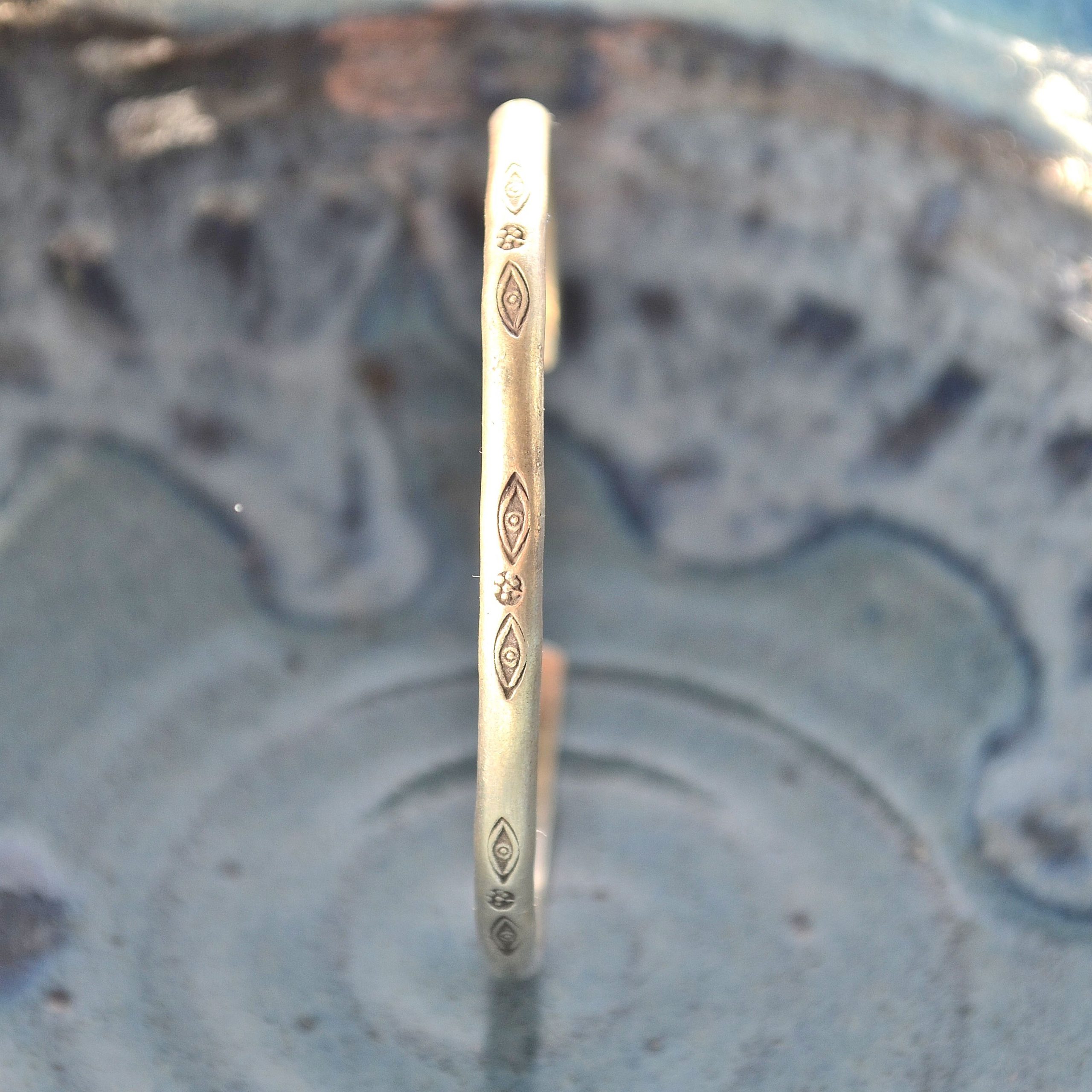 Simplistic and elegant the Bea Bangle is a pleasure to wear and one of our best sellers. Completed with oxidised leaf and flower stamping.