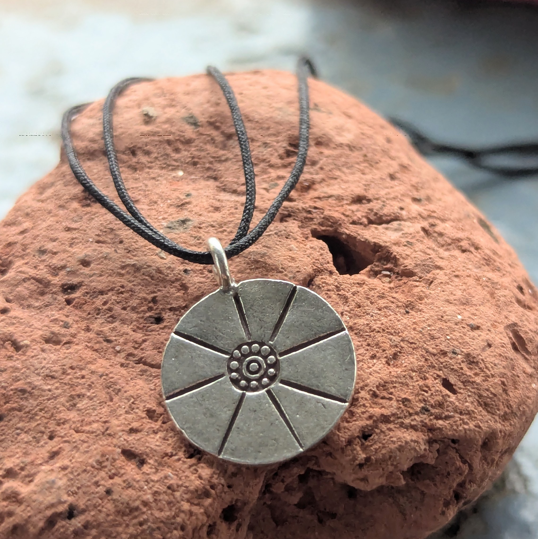 Sun worshipping disc pendant