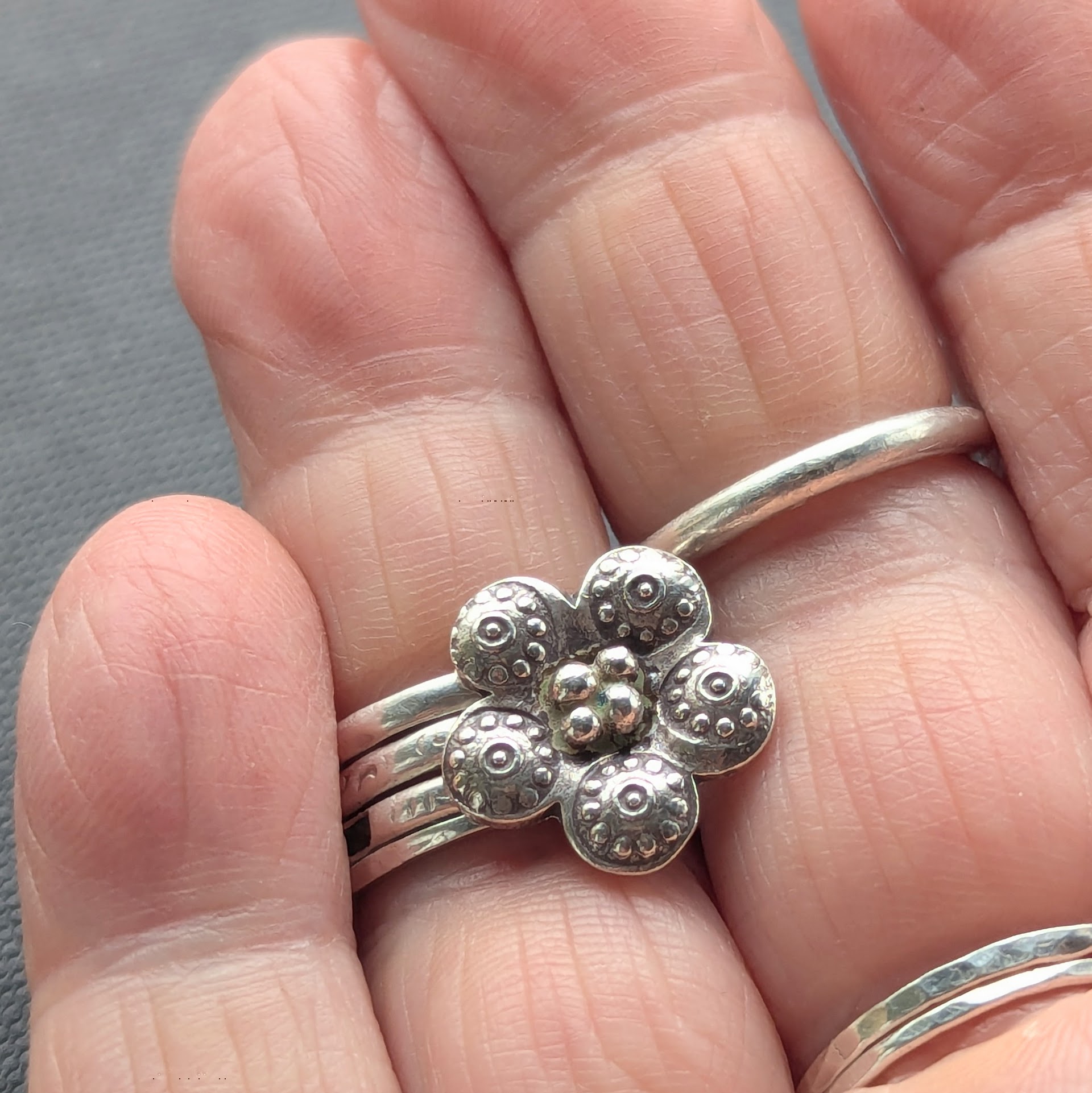 The jewellery is all recycled fine silver, produced with traditional silversmithing techniques and hand tools. This hands on approach gives the pieces a uniqueness all their own and an organic feel.
