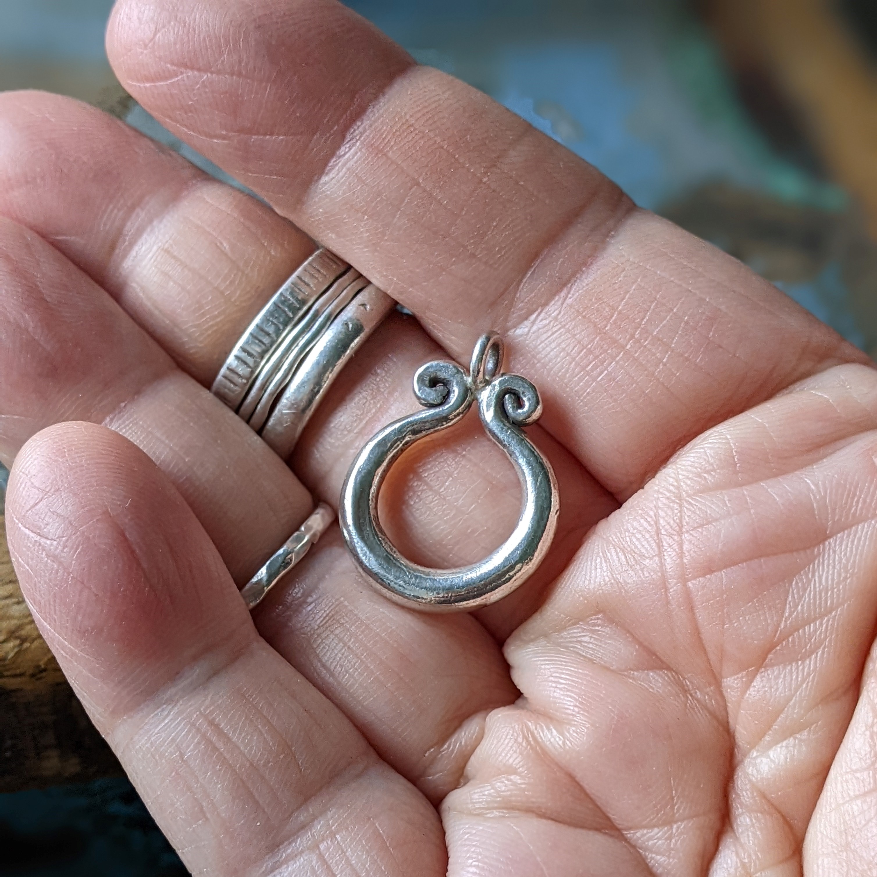 The Isadora Pendant is a chunky tribal feel statement. Featuring two spirals which balance out the doughnut shape beautifully.