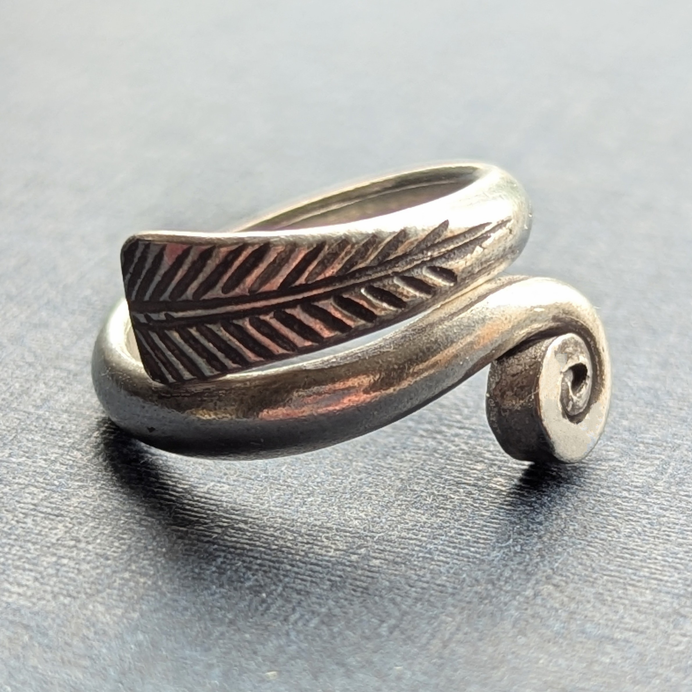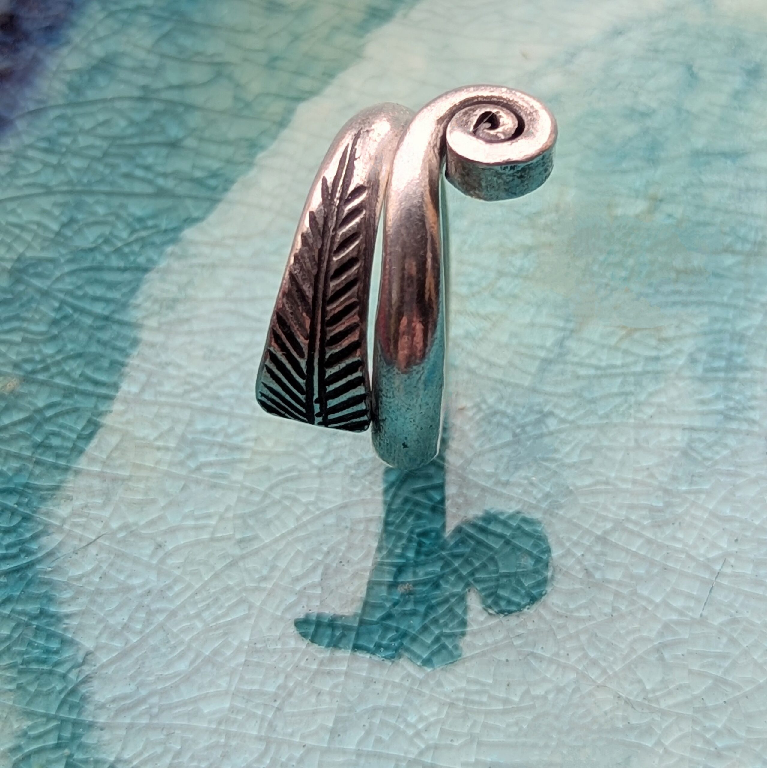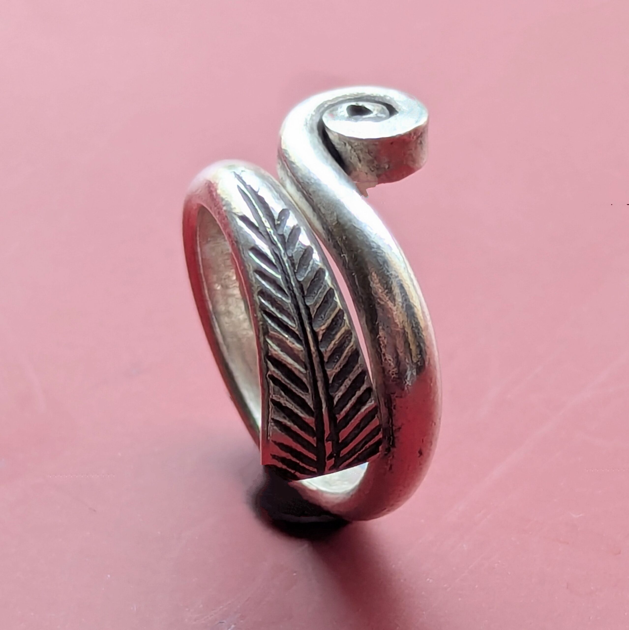 The Rafferty Ring has a wraparound design and is completed with bold oxidised feather patterning and a feature spiral. Tribal feel for unique people wanting something a little different.