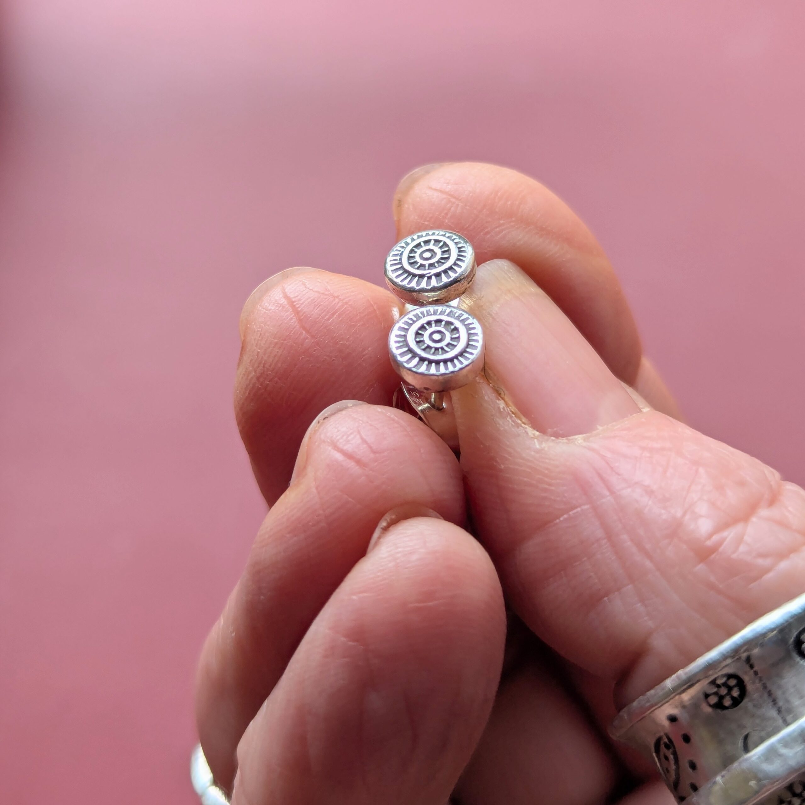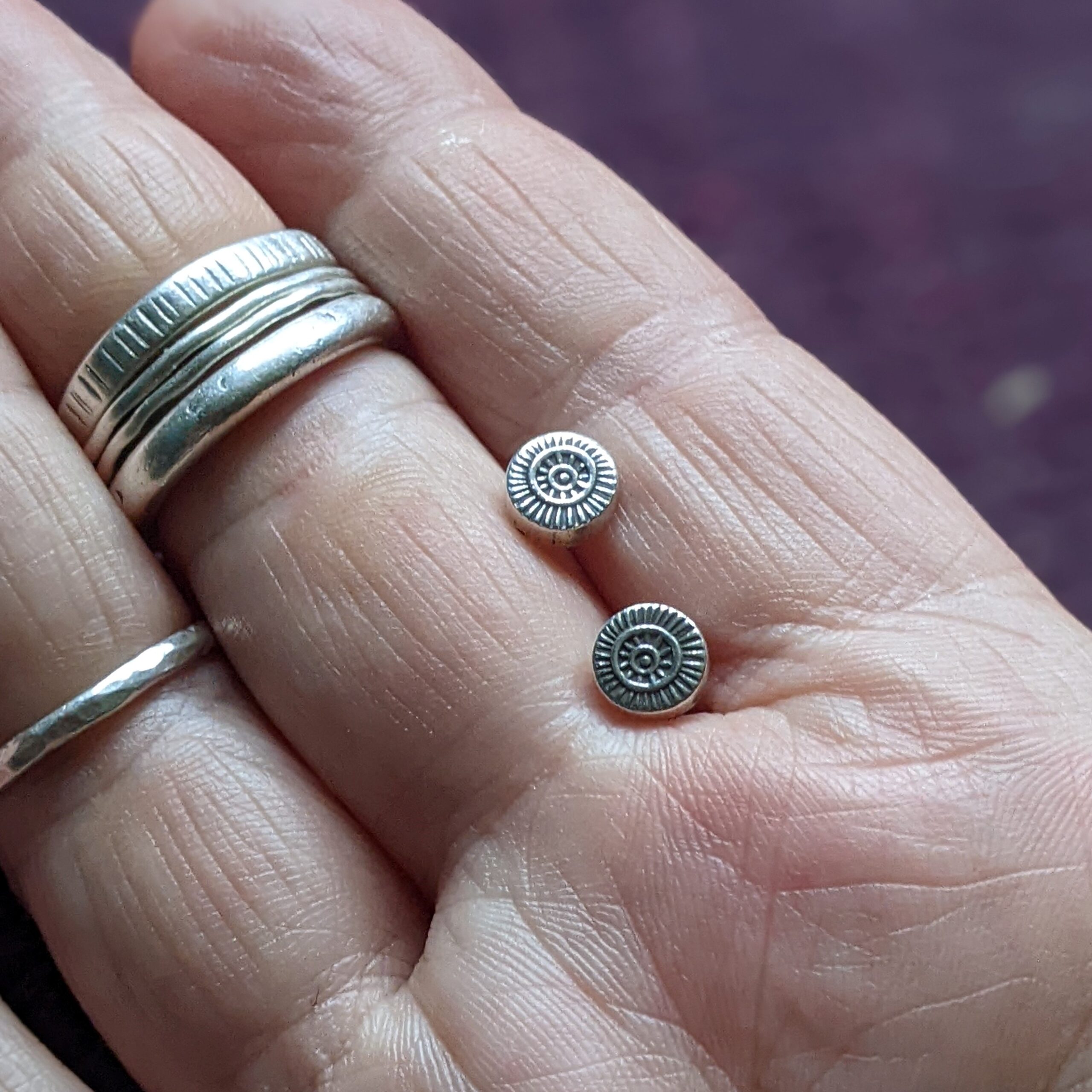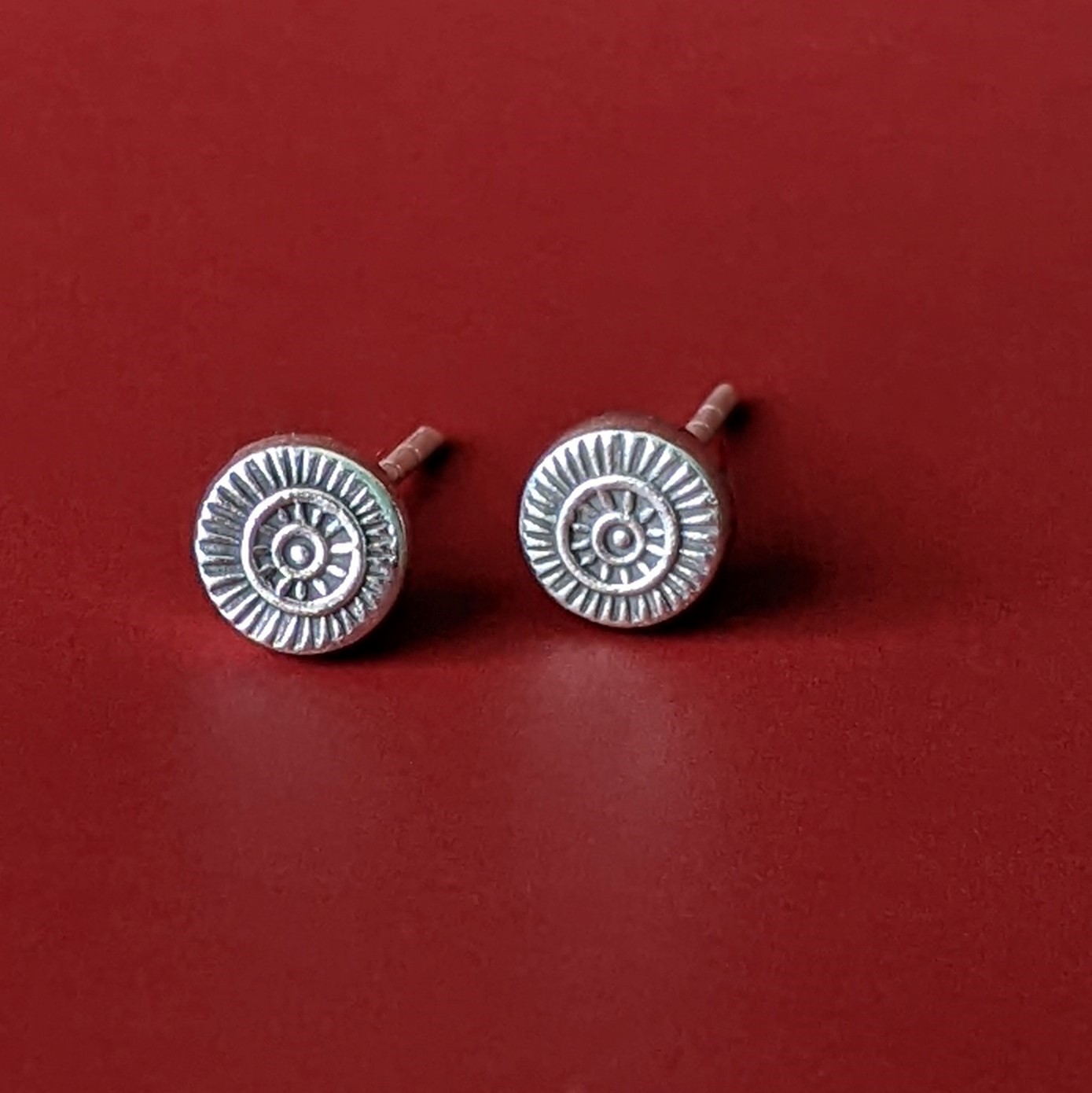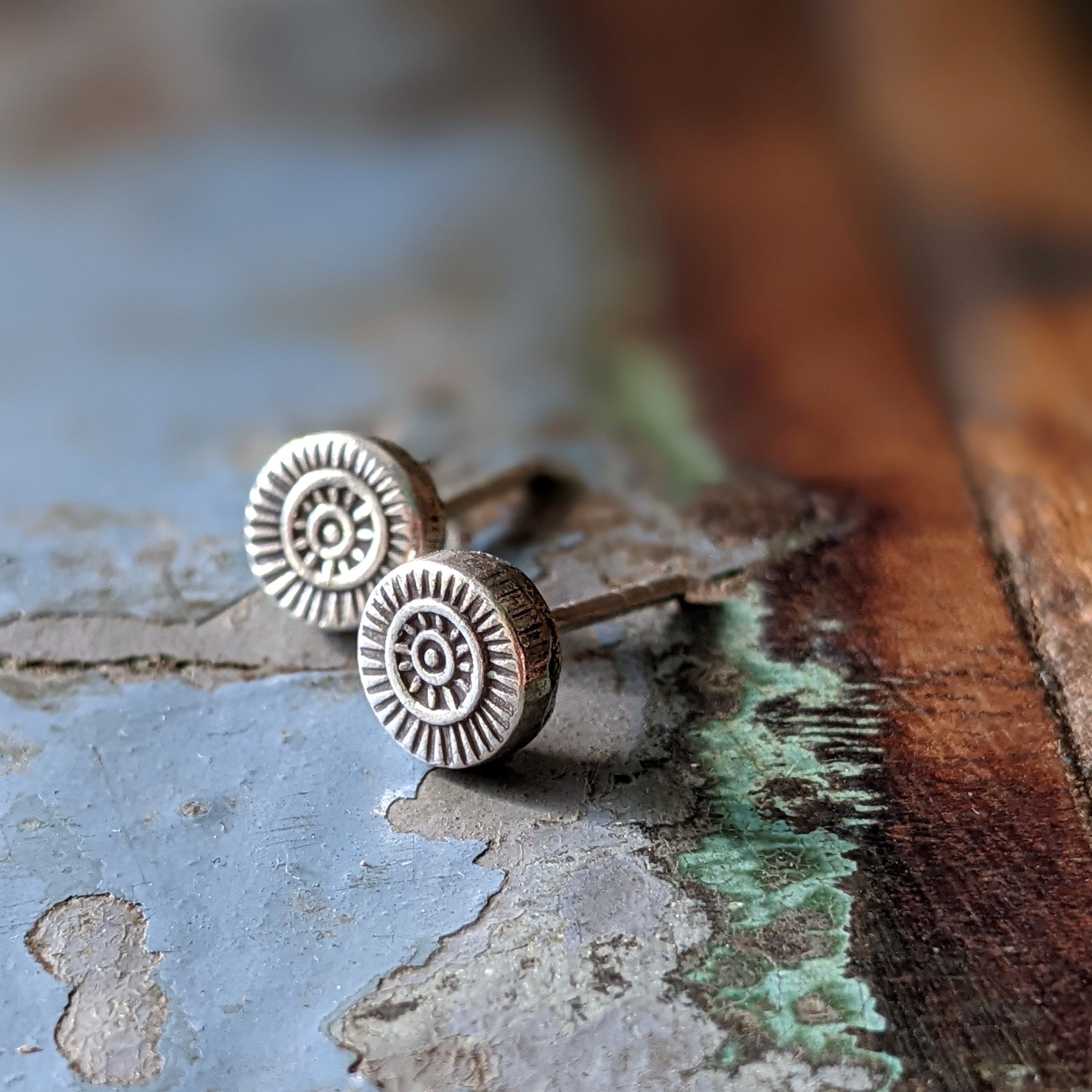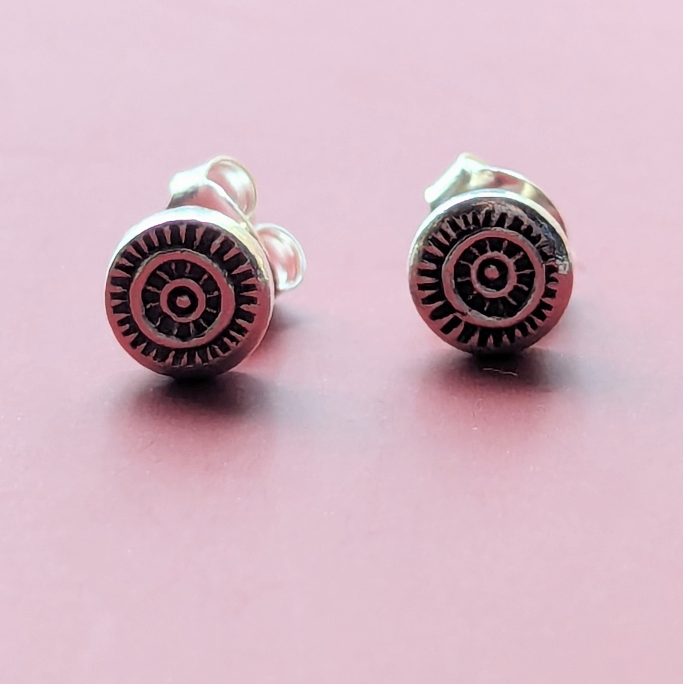 The Saba Studs certainly pack a punch with their oxidised circular sunburst design. Small and very mighty these studs are perfect for any occasion.